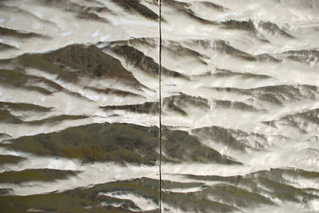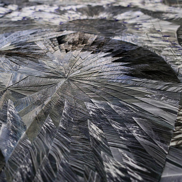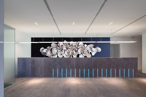 Whether woven or printed, textile feature walls offer a new surface dimension with further detail, texture and embellishment. In an office, a fabric feature wall can be multipurpose, providing heat and sound insulation as well as aesthetic elevation. Modern textile artists continue to innovate; the fabric walling pictured exhibits a vast yet meticulous embroidery - the artist draws inspiration from extreme landscapes such as glacial pools and coral reefs.