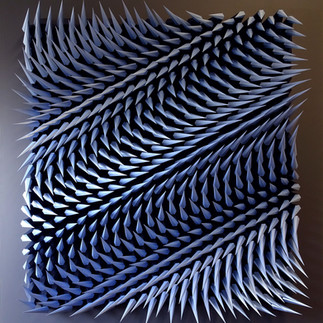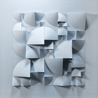 One of our artists is a leading figure in the research field of nano folding - his abstract paper artworks use specialised paper sculpture techniques to form labyrinths of colour. Every fold and edge of his 3d paper sculptures are perfectly placed to create a mesmerising visual experience. The angles and lines flow together seamlessly, forming a symphony of geometry that is both calming and invigorating. Another one of our artists uses geometric art forms to respond to the play of light in the atmosphere, working through multi-medias, including the metal relief art form. His illusory artworks belie the conventional wall space and add an unprecedented layer of fascination with traditional shapes. His original modern relief art works are bound to transform your space into an area of energy and interest.