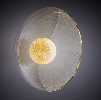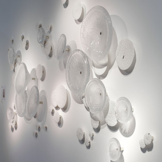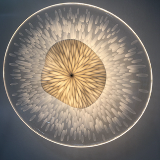 This artist's glass and ceramic modern 3D wall art is a breath taking testament to the beauty of art and science. The organic forms and microbiology-inspired designs of these pieces bring an exquisite touch of nature to any room, evoking a sense of wonder and awe, whilst the delicate interplay of light and refraction that these sculptures produce is truly a sight to behold. As light dances across the smooth surfaces of these artworks, it creates a dazzling array of colours and patterns that seem to come alive before your eyes. The effect is akin to gazing into a kaleidoscope, where each twist and turn reveals a new and fascinating facet of the piece.