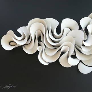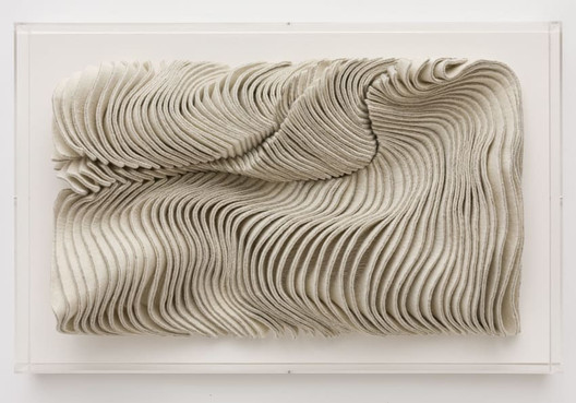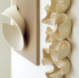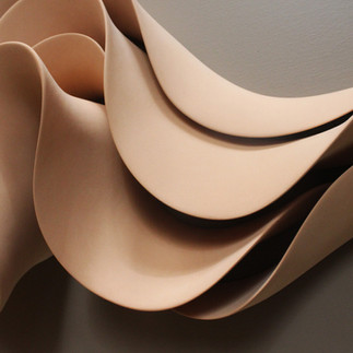 Ceramic wall art is incredibly versatile, able to create the same smoothness of texture and sturdiness of wood, or if the artist is carefully inclined, the works can become visually delicate and soft, despite their firm material. One such artist's work is pictured below, whose intricate, rhythmic patterns in their 3D sculptures have a tactility that appears as if one has just folded or curved some paper. Like ocean waves, they are imbued with a sense of harmony, presenting themselves as if murals to the spiritual practise of the artist's hand-crafting.