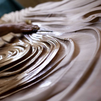 Many works of the modern 3D bas relief type are extraordinarily innovative, using the ancient technique of carving to create sleek, modern designs in a range of materials. Inspired by the awe-inspiring beauty of the Cornish landscape, one of our experienced artists uses wood-carving to create stunning wood sculpture wall artworks that engage hands-on with the natural material he's inspired by. Through a meticulous application of gesso, as well as the brushing and burnishing of gold leaf, his works are truly original, captivating and contemplative. As large textured wall art pieces, the raised elements of the artwork catch the light in unusual ways, casting shadows and creating a dynamic visual experience. This effect of modern relief art can be particularly effective in rooms with neutral tones or minimal decor, ideal for adding a touch of glamour and finesse as a focal point to a hotel, residential or corporate space.