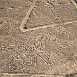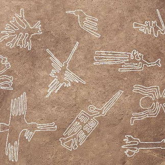 In 1926, Peruvian archaeologist Toribis Majía Xesspe was drawn to tales of extraordinary, large-scale etchings across the Nazca desert in Southern Peru. Intrigued, he embarked on a foot journey to document these mysterious markings. After days of searching, he pieced together his drawings of the colossal geoglyphs—biomorphic designs depicting hummingbirds, monkeys, spiders, llamas, plants, and flowers.