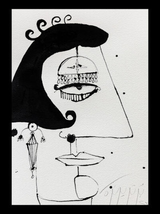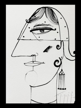 Muftah's ink drawings capture nostalgia and reverence for the women adorned in these accessories; in her artwork, they are irrevocably regal, elegant, resembling timeless figureheads in black and white. Muftah removes all indicators of gold's signature opulence, replacing the glitz with thin stretches of black and white, jagged lines of ink accompanied by some serpentine curves of pattern and detail. In this way, Muftah's drawing style doesn't separate the jewellery from the women, rather they are one and the same.
