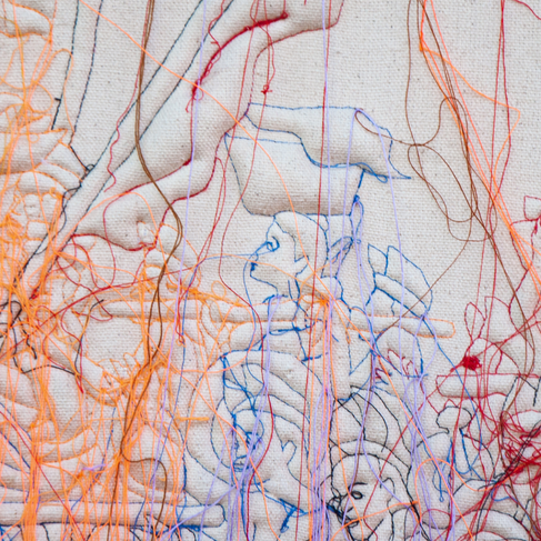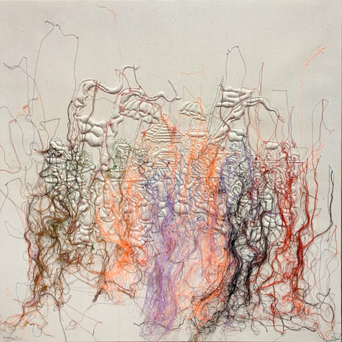 Acrylic on stuffed canvas, cotton thread; machine sewn