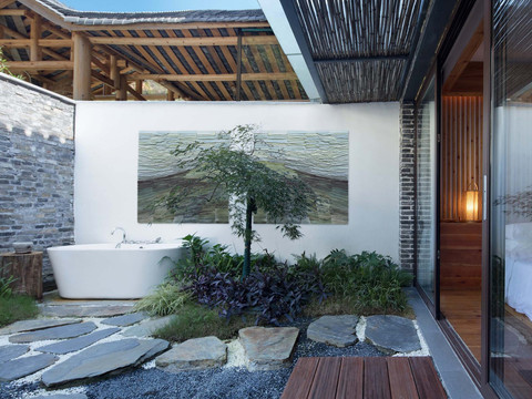 Rather than recreating nature, a spa design concept may also feature a natural environment more prominently, and intend to give visitors a "back to nature" experience. A ceramic feature wall speaks directly to this spa design concept, as the artwork feels viscerally "from the earth" – the raw element of earth has been transformed into ceramics, and so nature has been actively incorporated into the spa design.