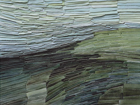 Intricately layering thin ceramic leaves creates a refined decorative effect. Through use of colour, it can resembles natural imagery – from waterfalls and ripples, to foliage or sand dunes.