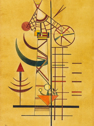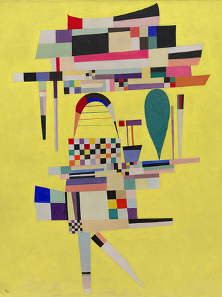 His experience of synaesthesia — a rare neurological condition in which sensory perceptions intertwine —reinforced this belief. Kandinsky heard colour and saw music. Spurred on by the intellectual upheavals of his time, he developed a visual language that mimicked the immersive qualities of sound, formalising his theories in Concerning the Spiritual in Art (1912). Blue was deep and spiritual; red, restless and forceful. But yellow held a singular power. It was “earthly” yet carried a "spiritual warmth" — forceful, stimulating, "advancing towards the spectator." He likened it to a “shrill horn” or a “high-pitched flourish of trumpets,” its energy vibrating outward in a centrifugal force (Concerning the Spiritual in Art, p.63).