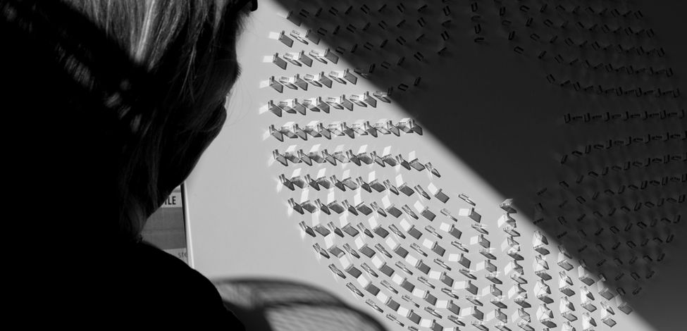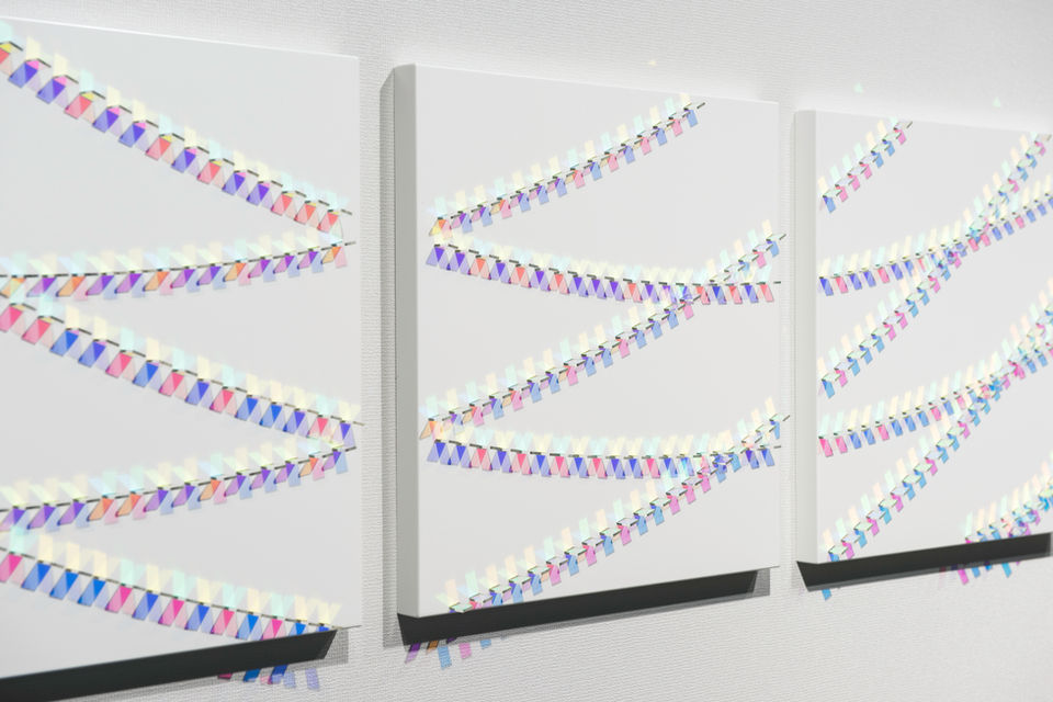 The artist’s sculptures are refined and often minimal arrangements creating kinetic patterns in response to the environments in which they are placed.