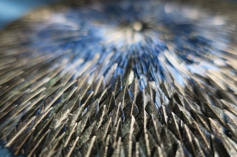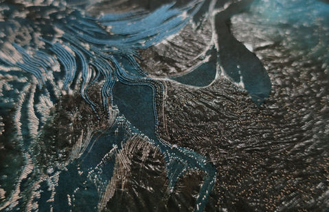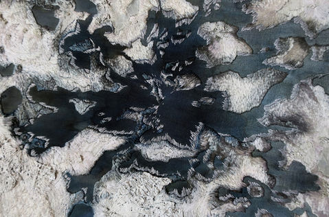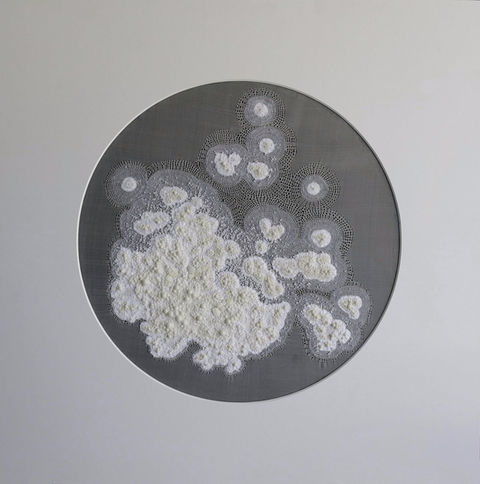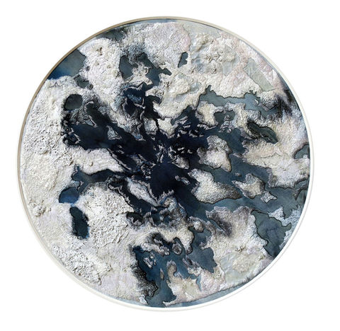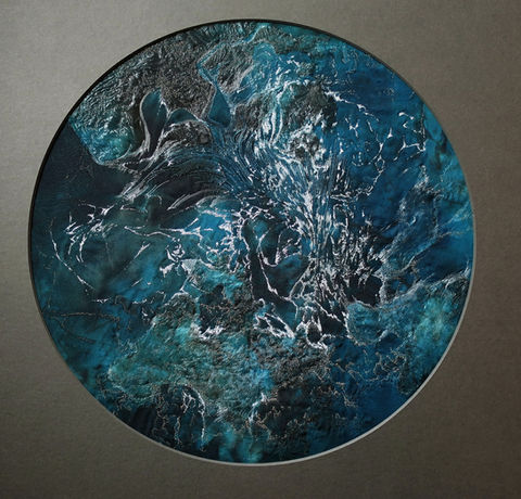 Deep within the textured surface of each work is the sense of dreamlike parallel worlds, where distant universes and hidden microcosms coexist.