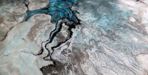 The artist draws inspiration from the natural world, often re-imagining vast and extreme landscapes, such as glacial pools, tidal estuaries, coral reefs and submerged atolls.