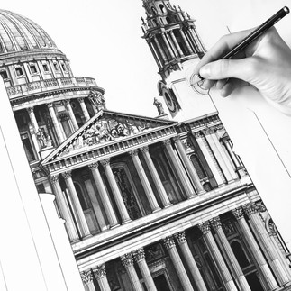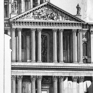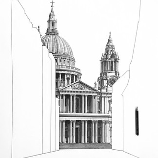 The most figurative pieces in the collection, these artworks respond directly to the panoramic views from the corporate office. Artelier worked with an emerging and highly talented British artist to determine the viewpoints of St. Paul's for the artworks, which are meticulously detailed drawings on paper. By removing focus from adjacent buildings, the artist highlights St. Paul's impressive architecture. This view is in fact much like the experience of looking at St. Paul's from the Numis office itself – since Numis is at the top of their building and raised high above nearby constructions, its windows offer a spacious and calming perspective from the sky. The individual artworks are presented in a gallery wall style, which feels more informal and resonates with the intimate Library atmosphere.