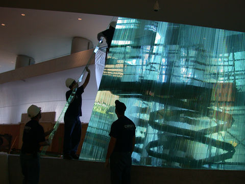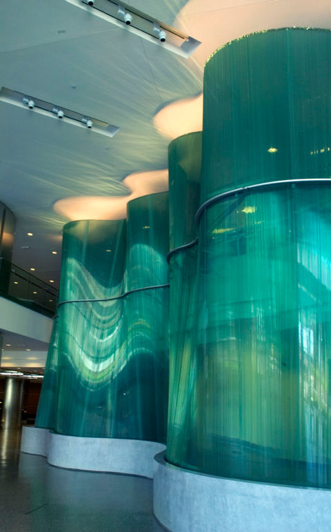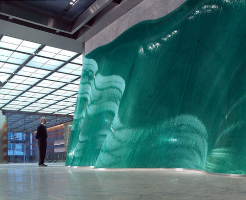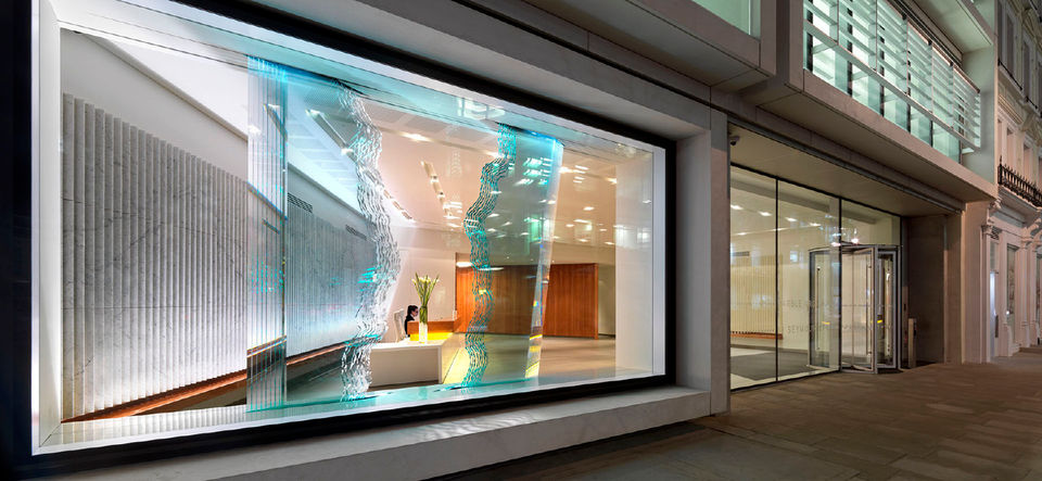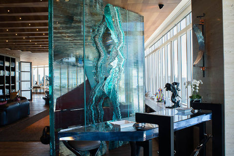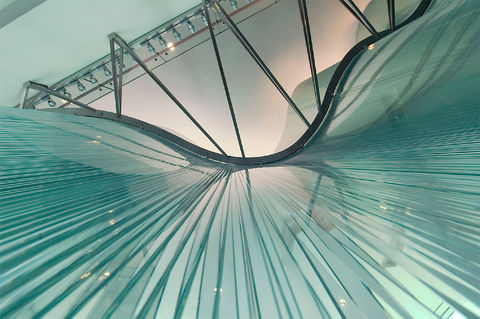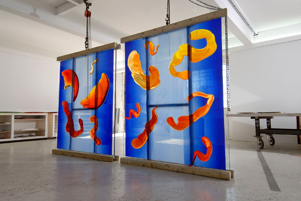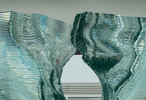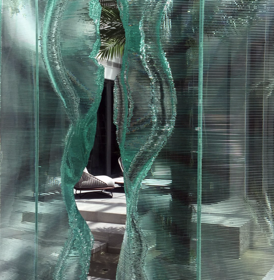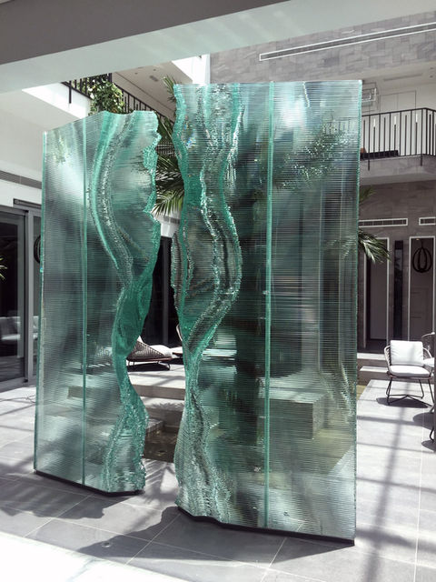 Working with glass, Lane exploits the full spectrum of qualities inherent to the material, often with an innovative focus on its engineering and strength properties.