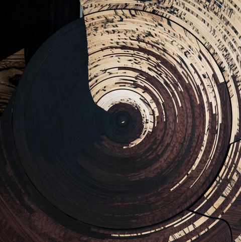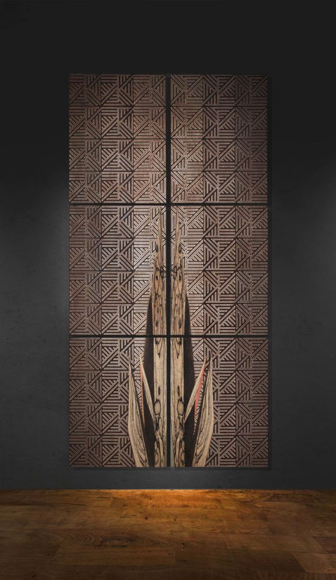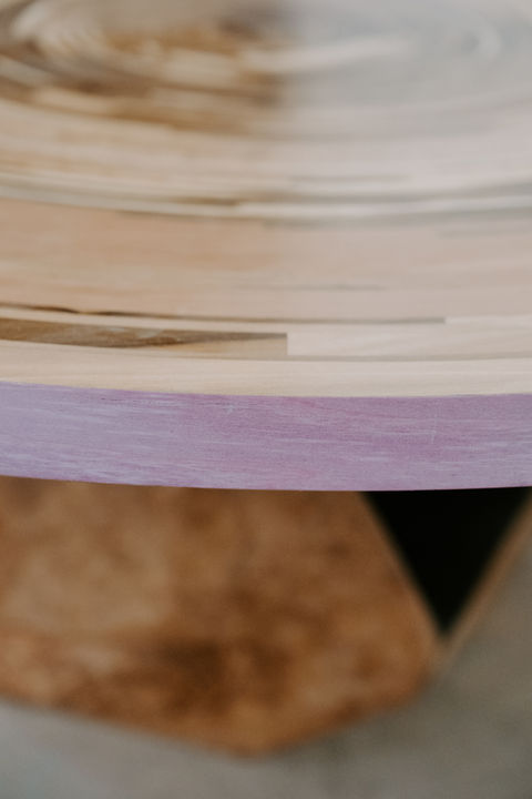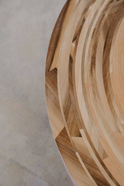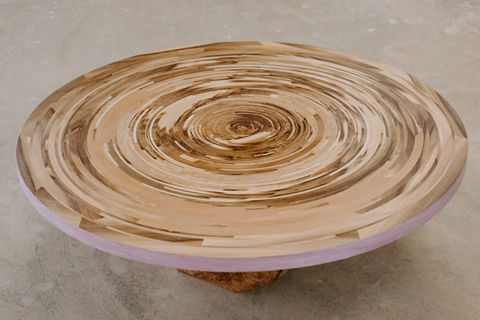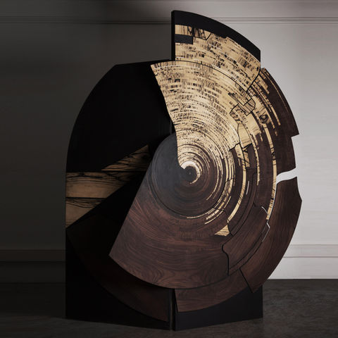Trained in architecture, Le Corno masterfully combines graphic freedom with artisanal methods of craftsmanship. Her work features unique materials such as mahogany, myrtle burl, smoked eucalyptus and smoked oak.