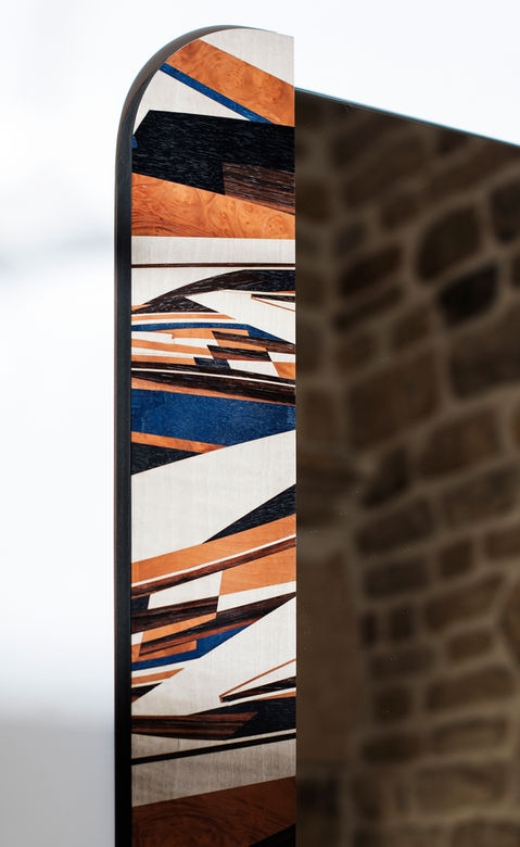 Combined with the traditional application of intricate veneer patterns following a preconceived design, Le Corno employs cutting-edge laser technology to finesse the precision and aesthetics of marquetry's complex graphics.