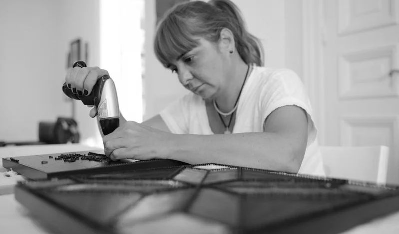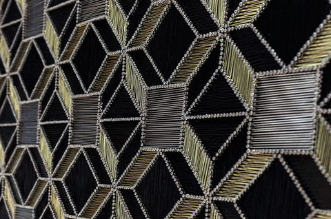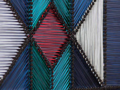 In an ode to the Turkish carpet motifs of her childhood, she weaves reflective metallic wires into a dense mesh, creating intricate geometric and abstract designs that explore structures of life, nature and architecture.
