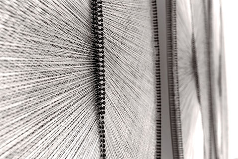 From a distance, the works of Gülay Semercioglu appear to be finely executed abstract paintings. However, on closer inspection the viewer can see the thin aluminium wire that fills the canvas, creating lush forms and fields.