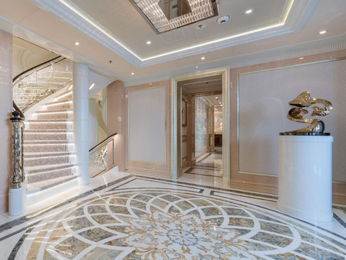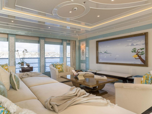 Onboard M/Y Plvs Vltra, inspired by art movements: including a Fauvist painting, an American-Japanese fusion artwork, and a sculpture inspired by Futurism