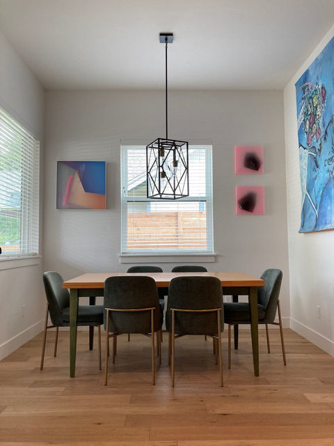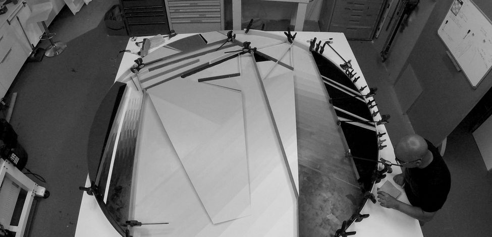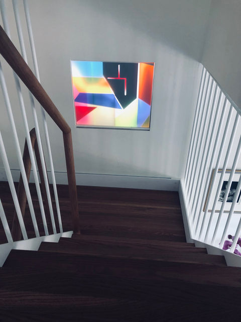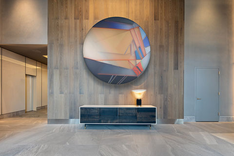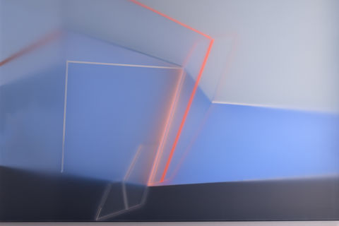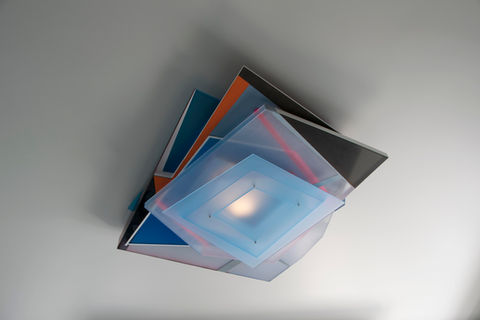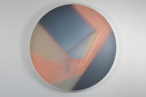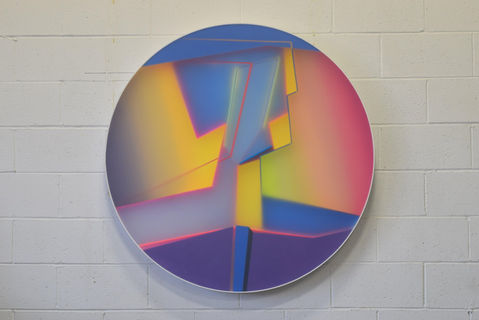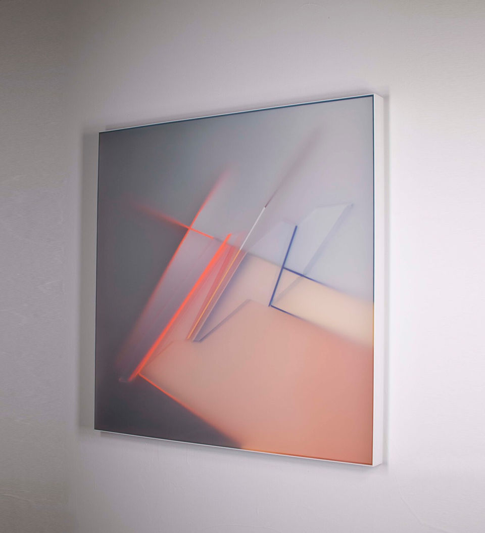 The result lends a kinetic quality to his art, creating a hybrid between geometric abstraction and the economy of form found in minimalism.