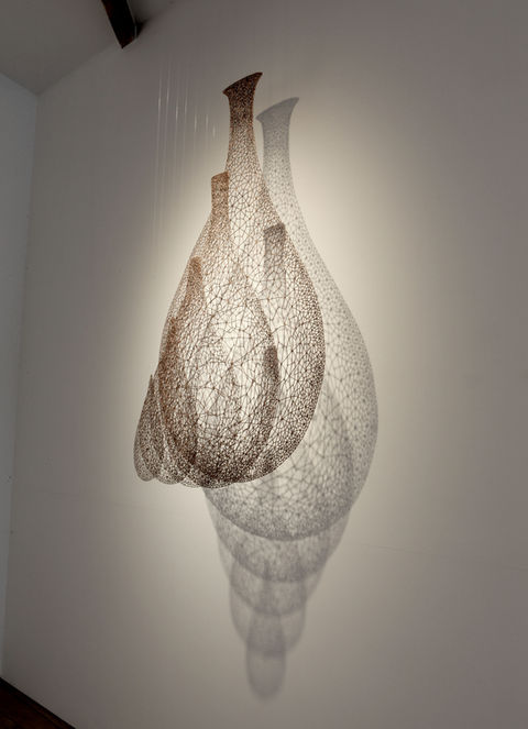 The artist’s particular focus lies in the negative spaces within forms, creating empty and weightless sculptures. These pieces resemble a trace or history of a form, where light and shadow magnify the viewer’s experience.