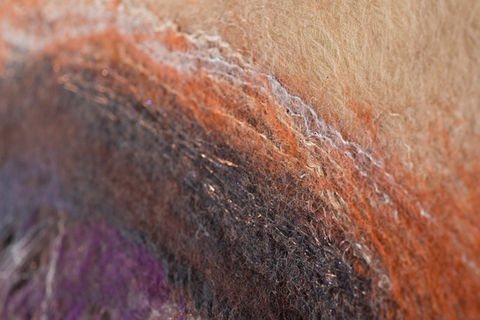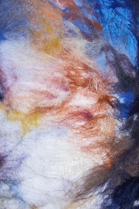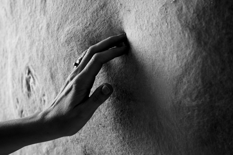 True to this traditional technique, Malengreau blends natural wool, mohair, merino fibres and silk by hand. Through a gentle washing process, the wool fibres open and become meshed with the silk, transforming the separate raw materials into one lightweight non-woven fabric.