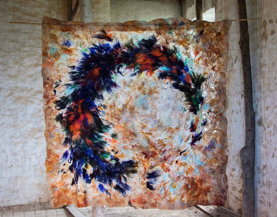 Inspired by historical crafts and ancient traditions, Malengreau’s practice explores the Nuno silk technique – an ancient felting tradition with roots in Central Asia.