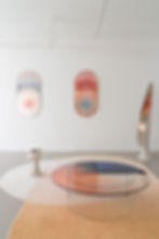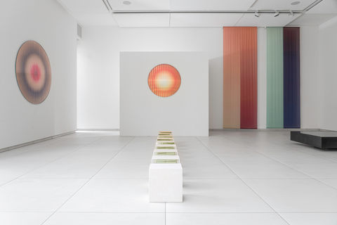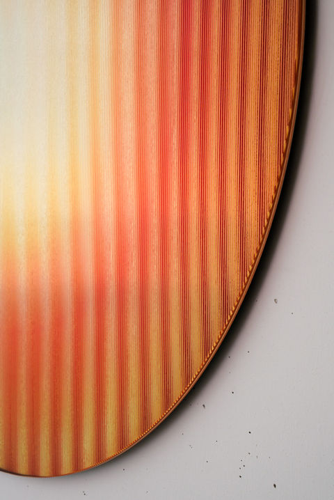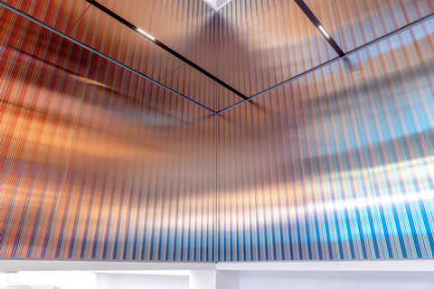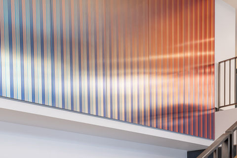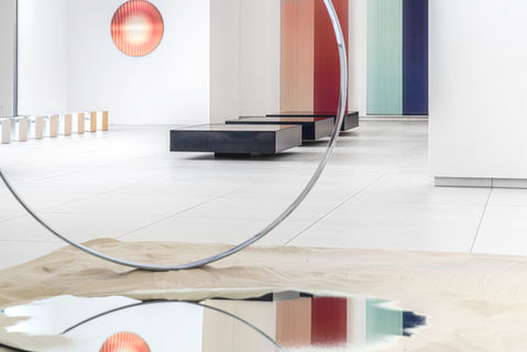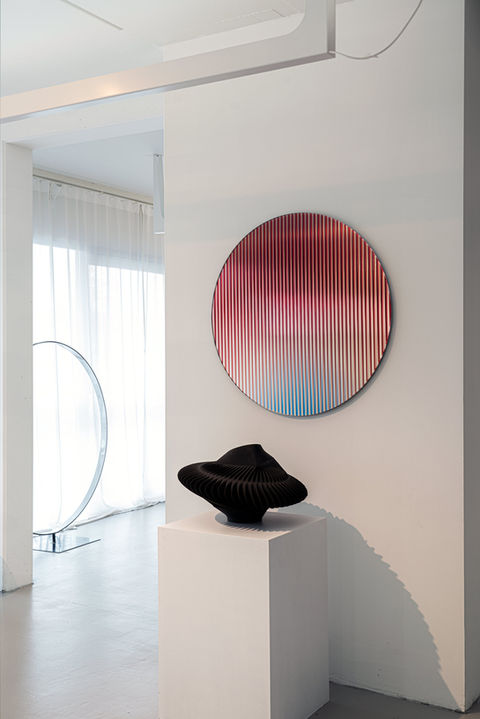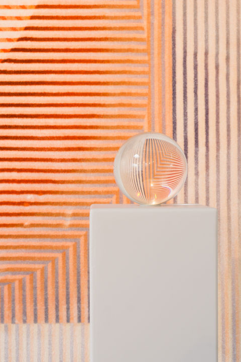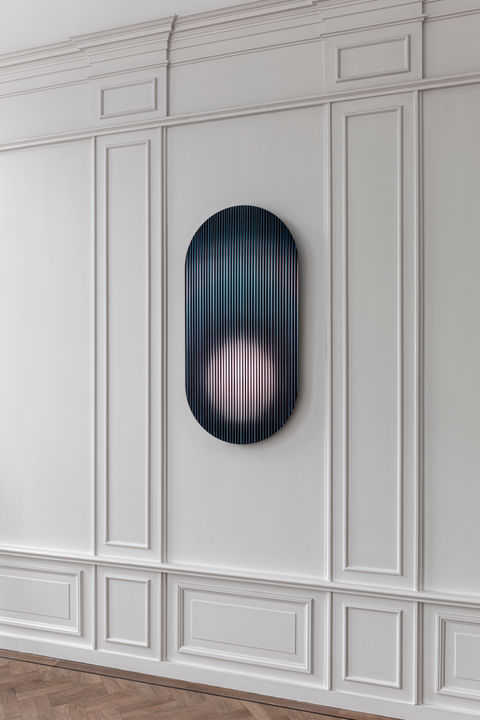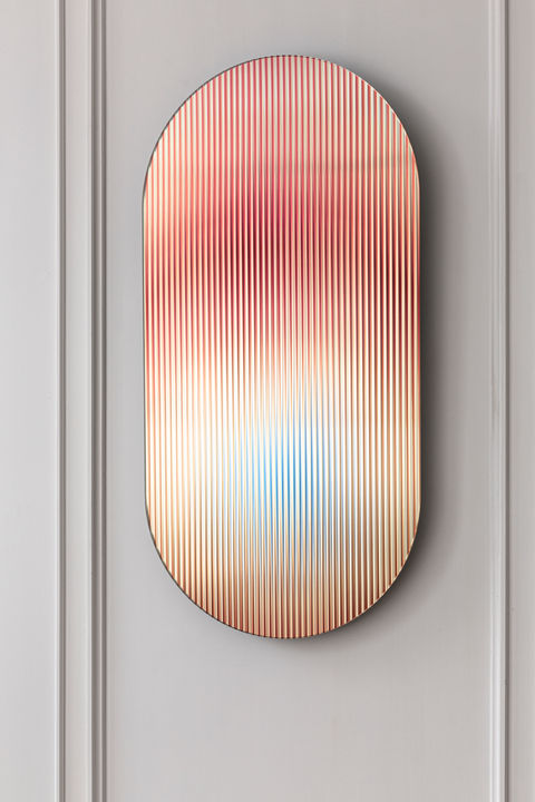 Known for their masterful use of materials, Rive Roshan’s works juxtapose cascading gradients of colour with intricate textures, balancing translucency and opacity to create deeply immersive experiences. Each piece reflects its environment, inviting viewers to experience a space anew.