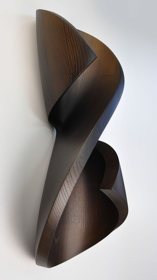 The work of this contemporary wood artist is deeply influenced by modernist sculptors, such as Brancusi. Its twisting forms celebrate the materiality of wood, utilising the wood grain to create subtle surface variety.