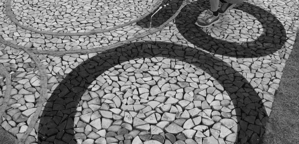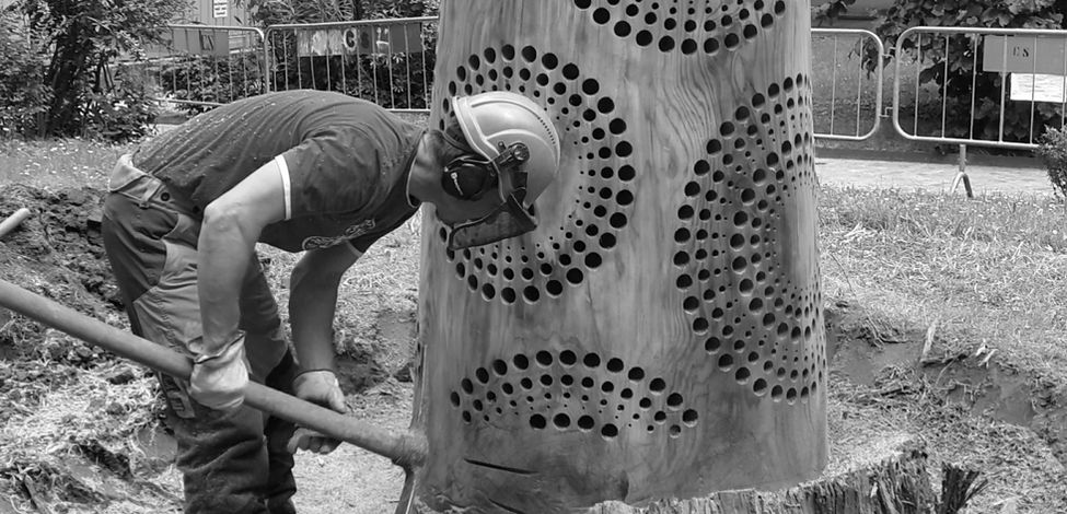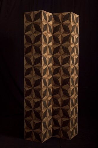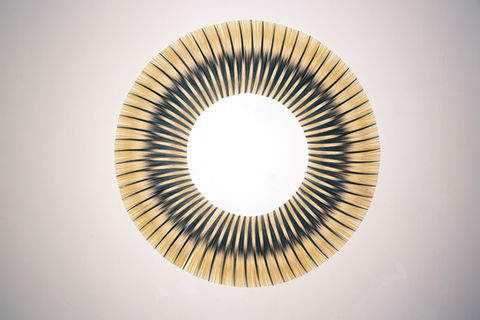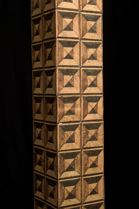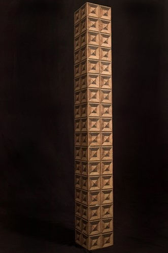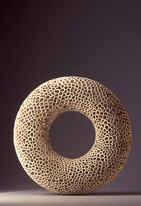 His large-scale sculptures playfully incorporate pattern and organic shapes to transform the raw materials, giving them a newfound vitality.
