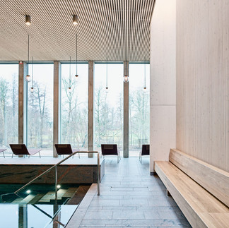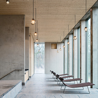 The recently completed Andrum Spa is situated on a serene slope and overlooks the grounds of a centuries old estate in Sweden. The spa comprises peaceful pools, with clean minimalist design and soothing landscaping that is immersed in the temperate forest landscape. "The building is designed on the basis of sensual impressions – light, aroma and taste, acoustics and touch. The materials are kept in their original form as far as possible, and together they form an entity that is at once soft-spoken and beautiful." - Johan Sundberg Arkitektur