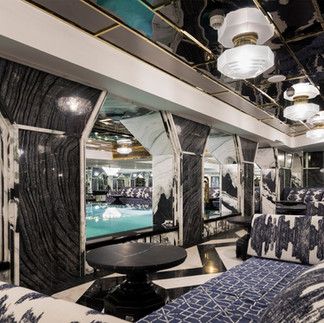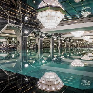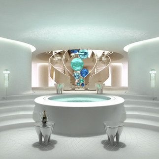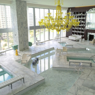 The studio is most well known for the design of the flagship spa for the Viceroy Resorts & Residences group which opened in Miami within the ICON Brickell Tower. Constructed to resemble a floating library amenities include a unique indoor water lounge featuring views over Biscayne Bay with bookcases and gigantic chandeliers that mimic ship's lamps or those on riverboats of days gone by.