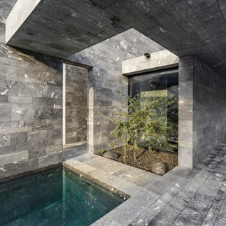 Smartvoll has recently received a lot of attention for their design of a private spa in Hinterbrühl, Austria, the design has been described as a 21st century temple of relaxation. Smartvoll explains that the floor plan is reminiscent of paintings by Mondrian translated into three dimensional structures. The seemingly free-standing monolithic slabs are also reminiscent of Stoneheng or Greek temple ruins.