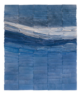 A unique wall artwork is this porcelain piece, created from hand-dyed leaves of porcelain that are only a couple of millimetres thick. These are layered onto one another to create a serene artwork, that attracts the eye through beautiful textures. This piece was made by a highly accomplished ceramic artist, who is in a league of her own in the execution of this technique.