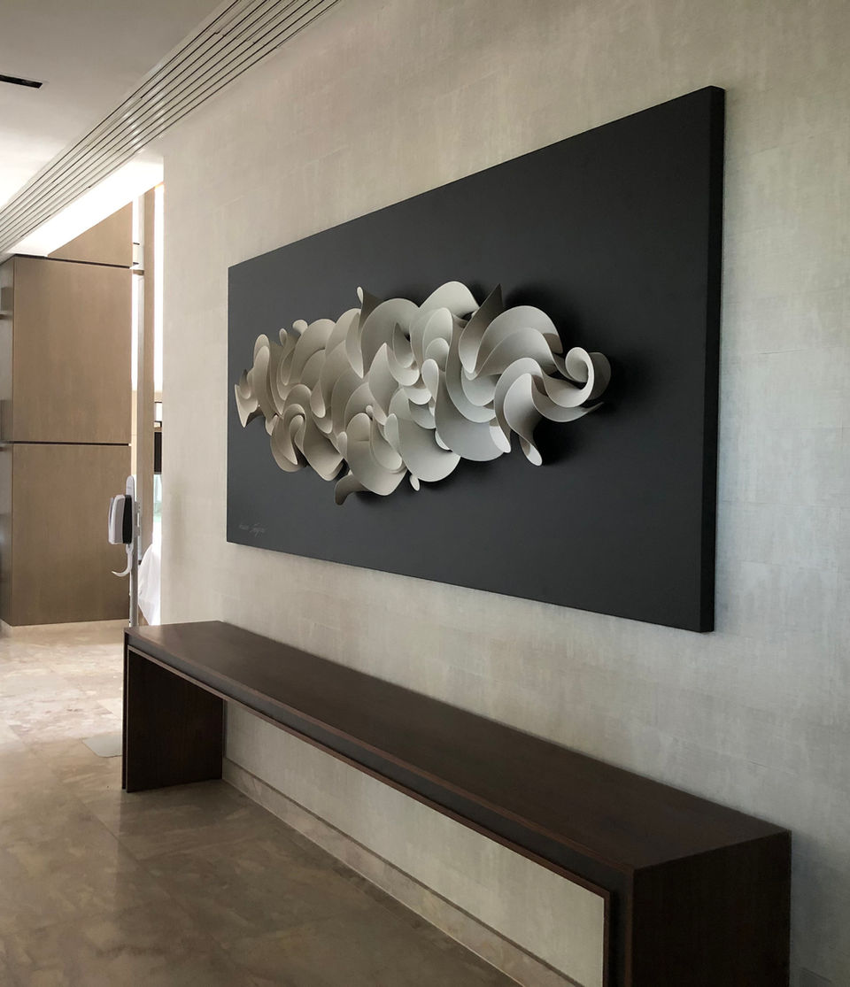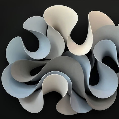 Creating rhythmic overlapping and interwoven forms, the artist distils an essence of frozen movement in her sculptural pieces. Balance and harmony are pivotal elements that are deeply rooted in the artist’s practice.